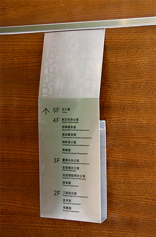 導視門牌在不同的環境中體現的風格和功能是有所不同的。如酒店賓館導視系統風格各異,有歐式、日式等,主要體現樓層指示,樓層服務、酒店辦公區,緊急出口等;